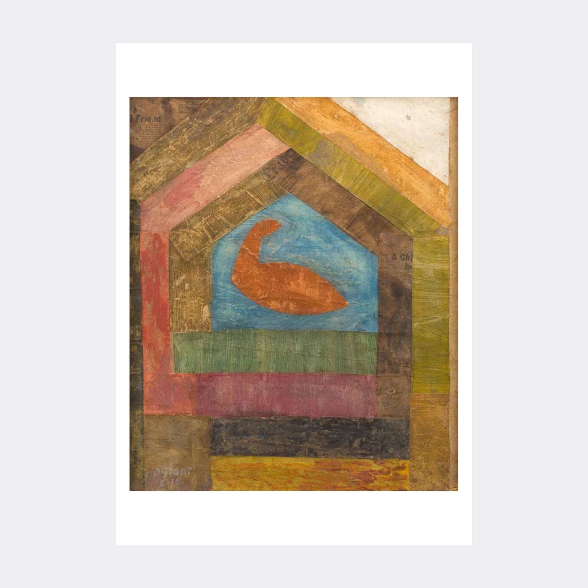 and gouache on board, framed and glazed. A6 postcard.