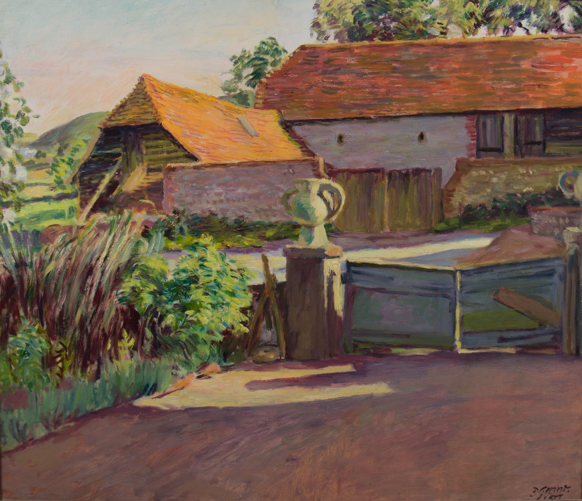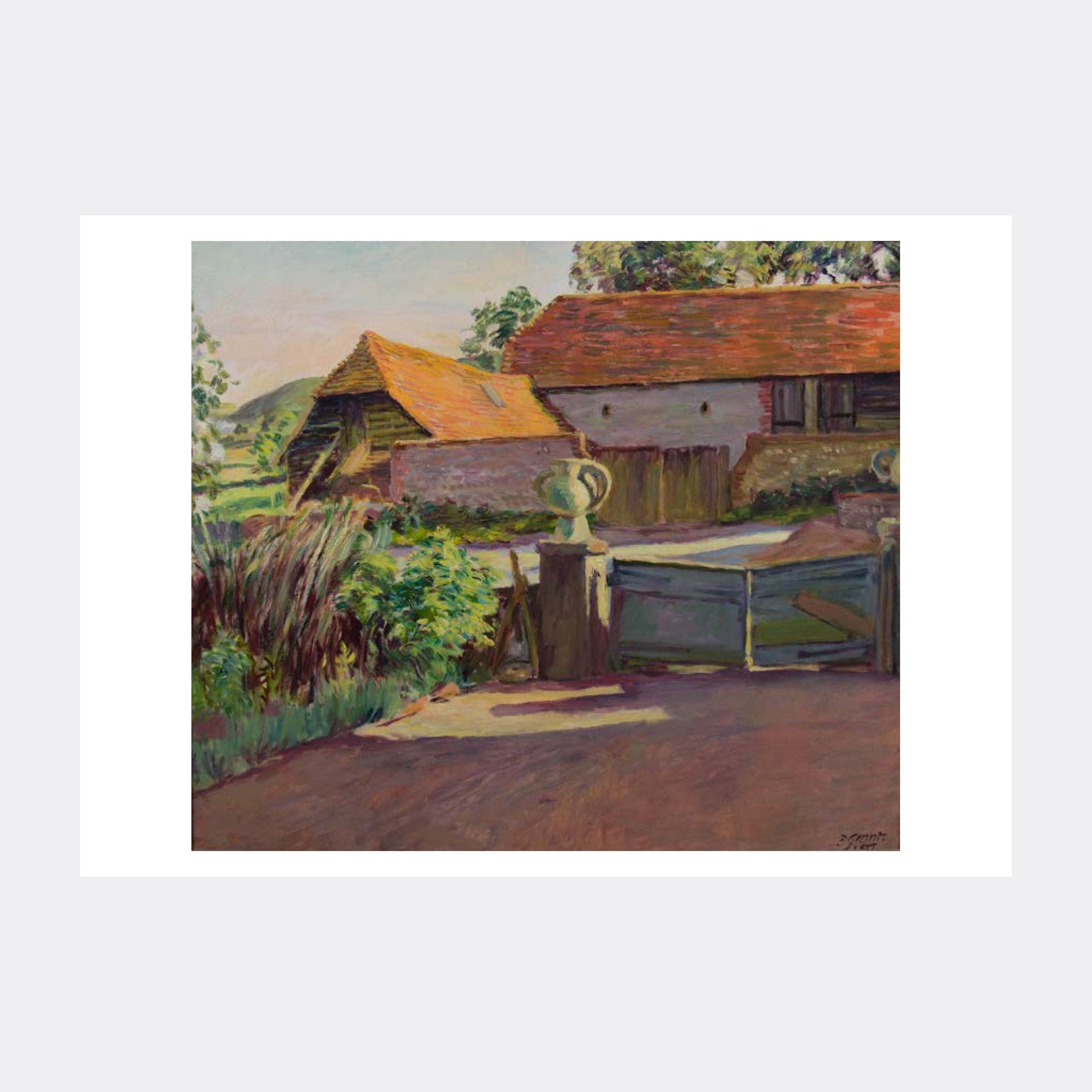 Duncan Grant, The Barns from the Garden, c1959, oil on canvas. A6 postcard.