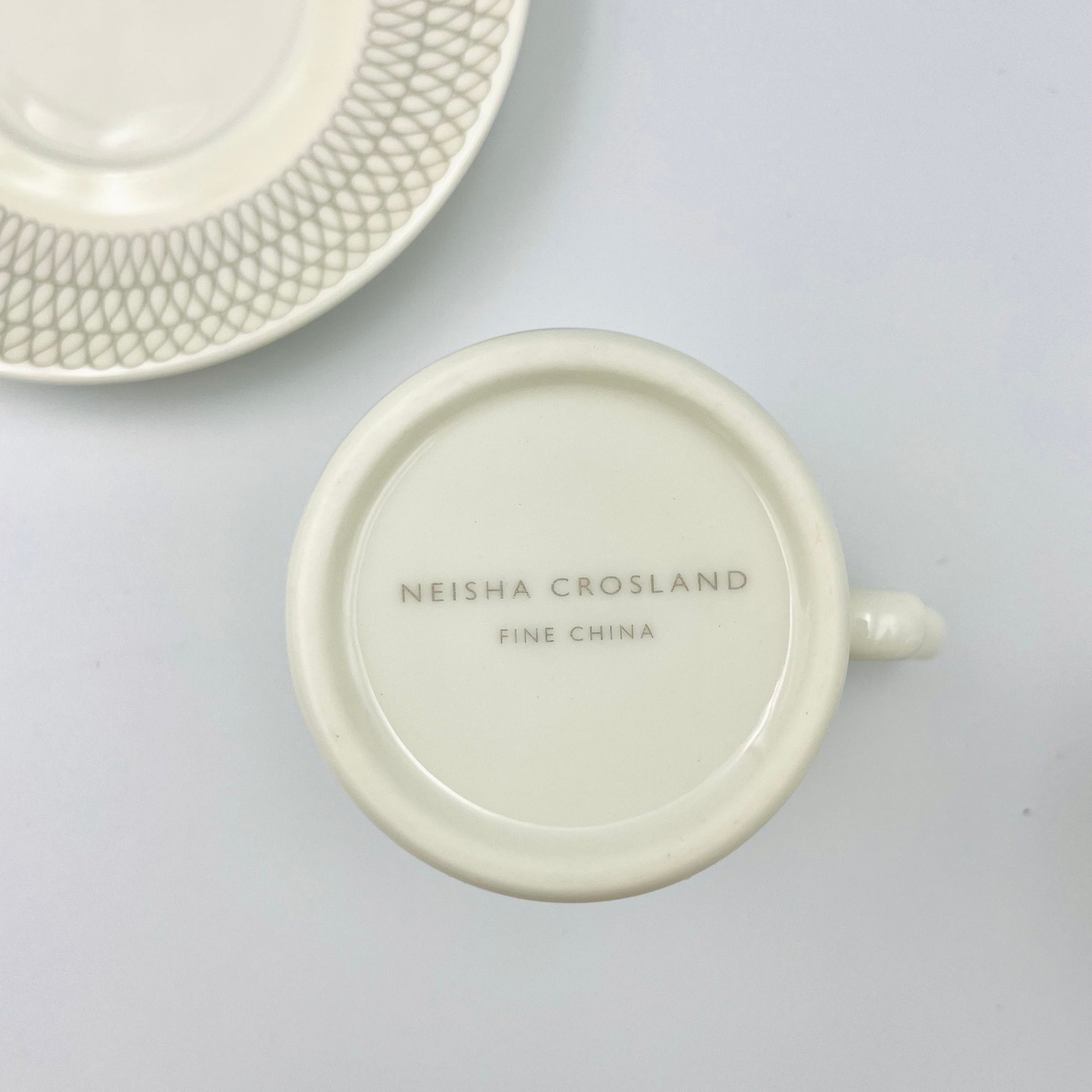 Beautiful set of four Neisha Crosland espresso cups and saucers in a striking grey and white pattern. Ideal for any coffee connoisseur when entertaining friends or just for the pick me up morning espresso.
