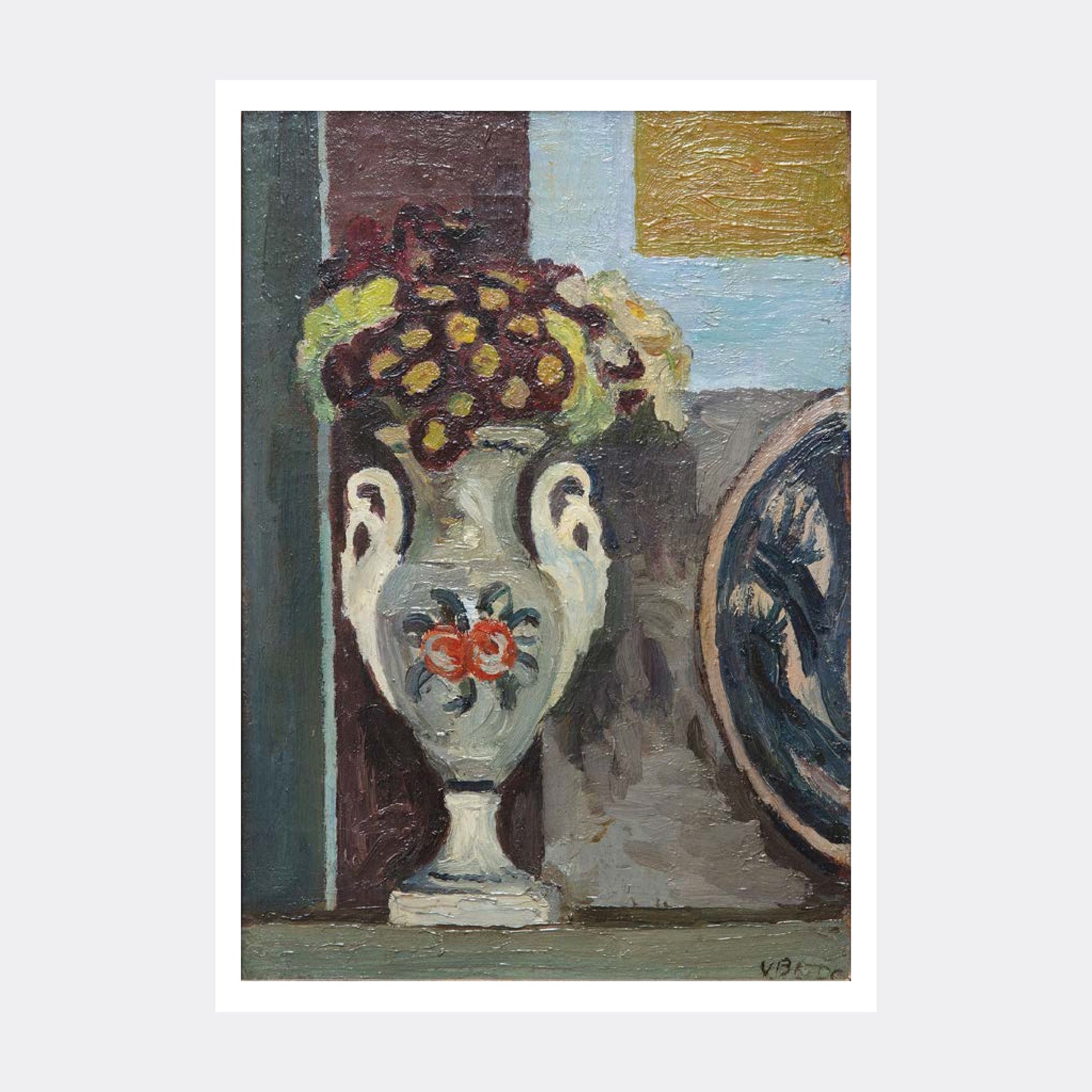 Vanessa Bell, Still Life, Polyanthus In Vase, 1930, oil on canvas. A6 postcard.