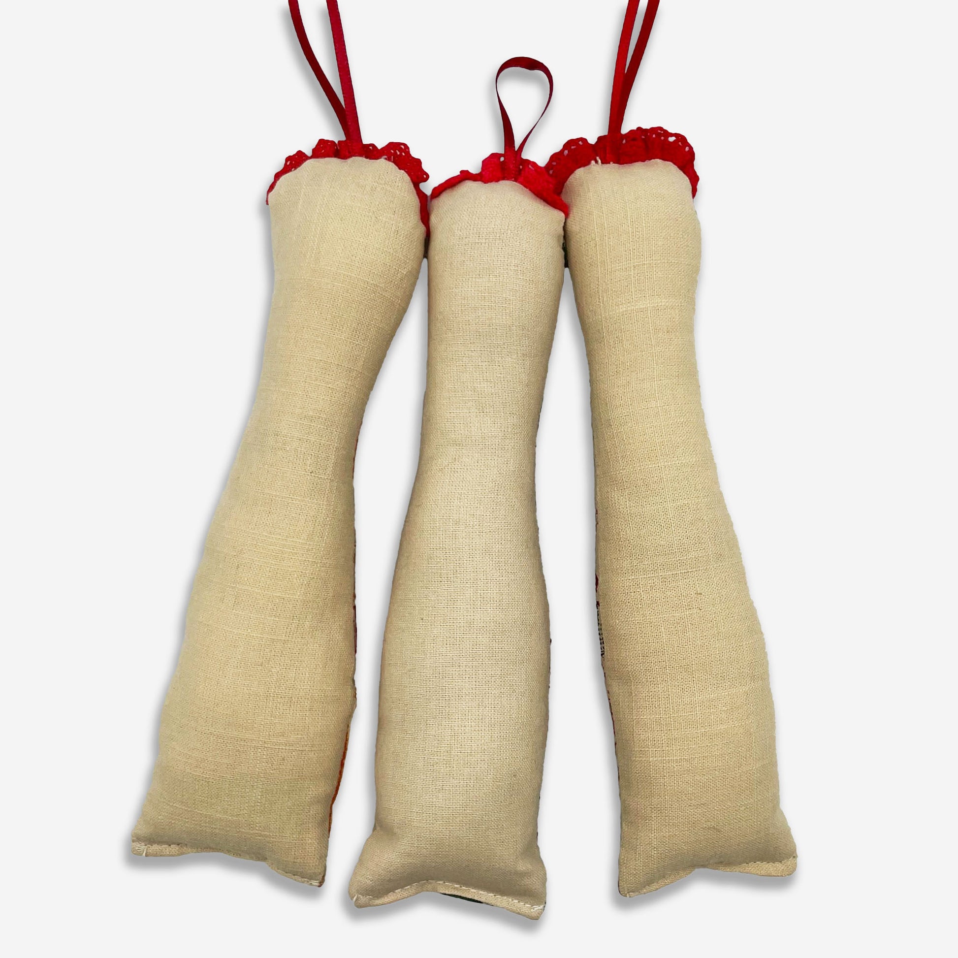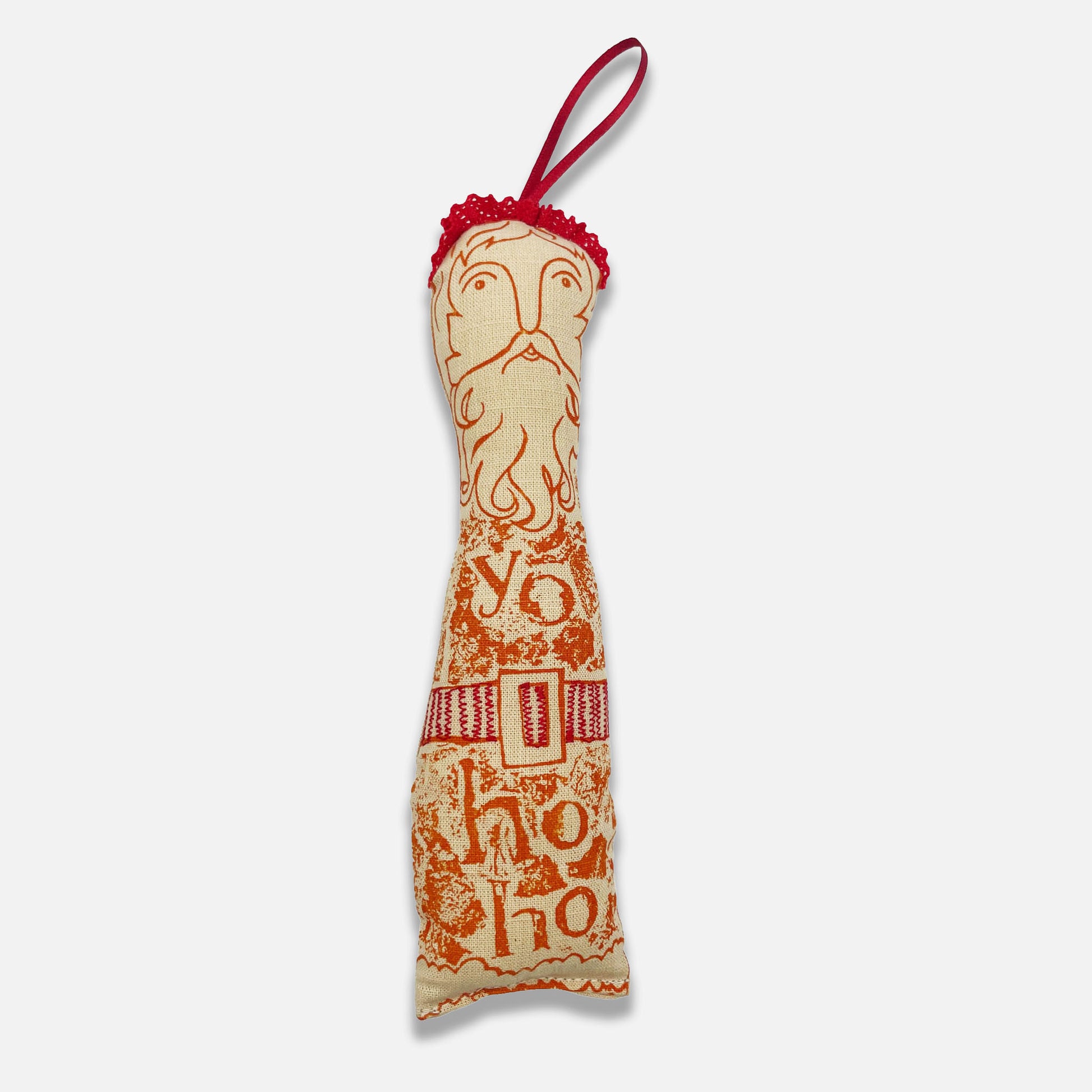 Natural linen cushioned tree Santa. Choose from Red, Green or Amber